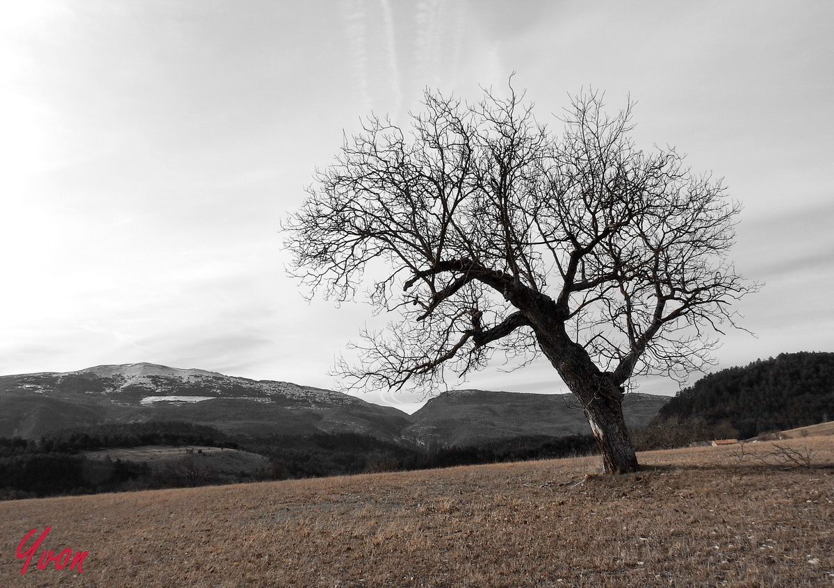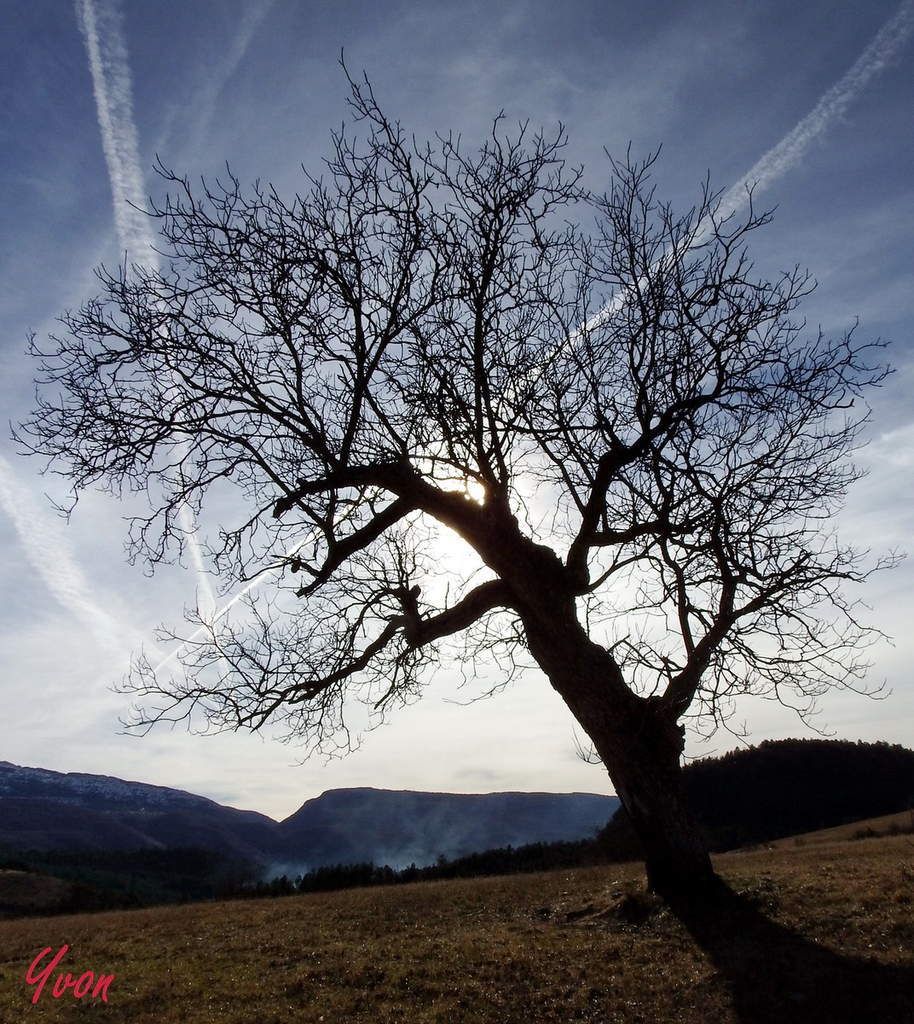 L'arbre de ce matin est toujours là, et il dresse son squelette dans le soleil couchant...